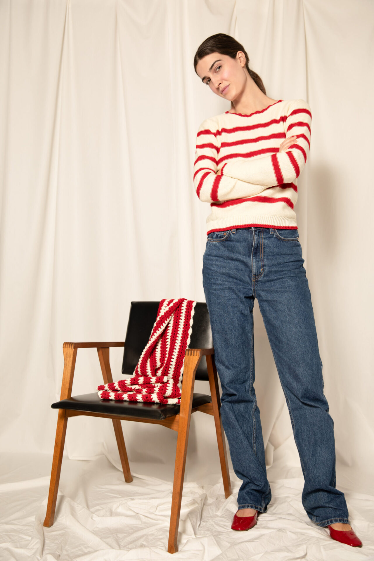 Maglia lana a righe panna e rossa